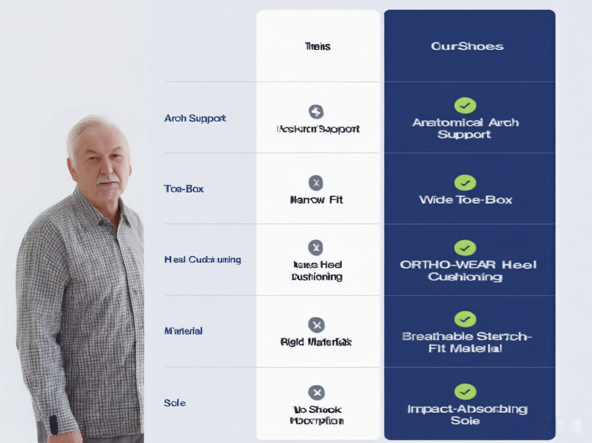 ✓ Supportive Cushioning - Unlike other shoes, OrthoFit offers targeted cushioning that supports your foot's natural arch, alleviating the pain associated with plantar fasciitis and ensuring all-day comfort.